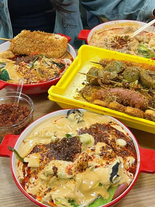 东北风仪的黏糊麻辣烫,香到舔碗。牛筋面吸满麻酱汁,黏糊糊超入味,面藕和鱼丸吸足汤汁,配上油麦菜的脆嫩,麻香中带点微酸。